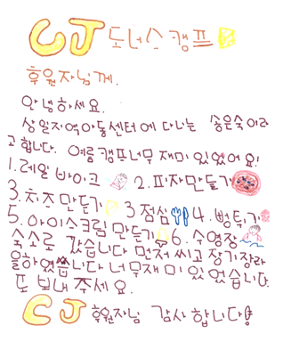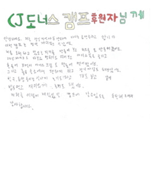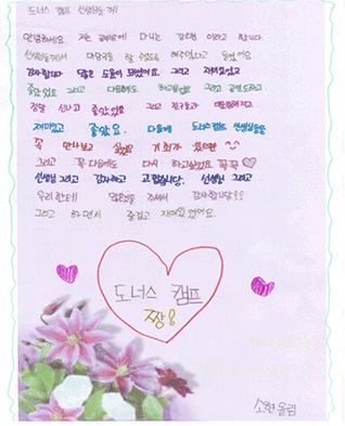 선생님들의 사랑으로 우리아이들이 캠프를 갈수 있 었습니다. 감사드립니다.